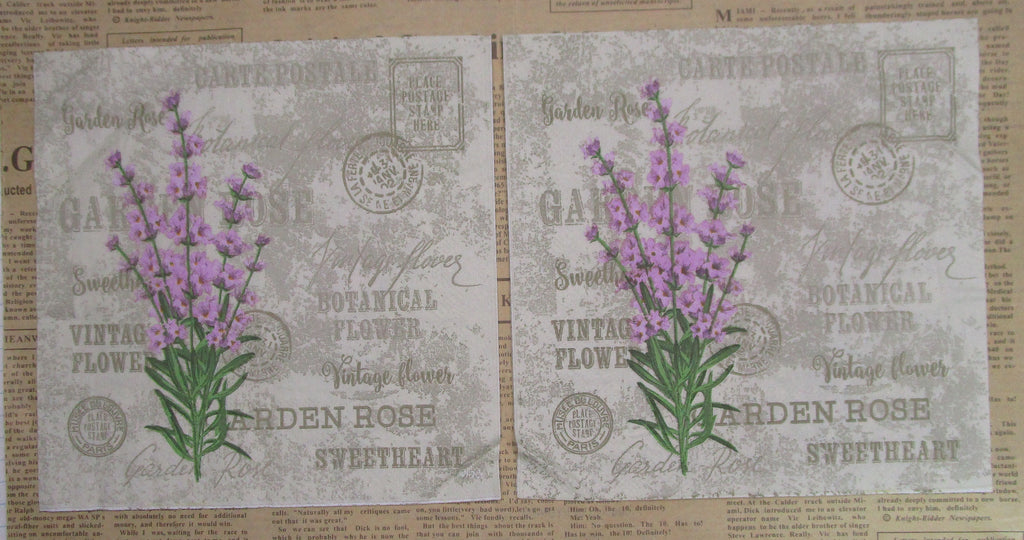 Paper Napkins (Pack of 2) Lavander Vintage Writing Postage Stamp