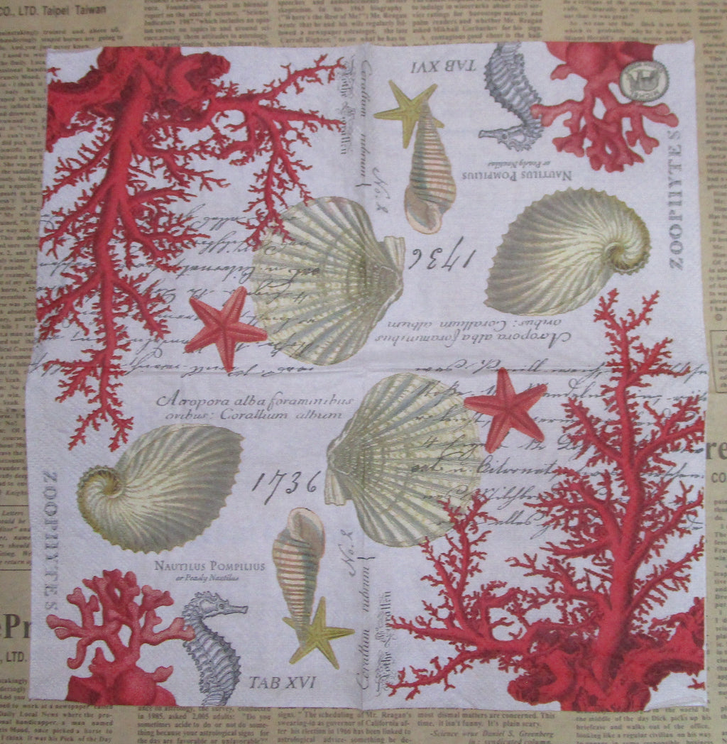 Paper Napkins (Pack of 2) Sea Creatures Shells Corel Collage Words