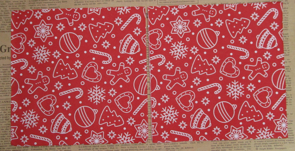 Paper Napkins (Pack of 2) Red and White Mini Icons Bauble Snowflake Candy Cane Tree